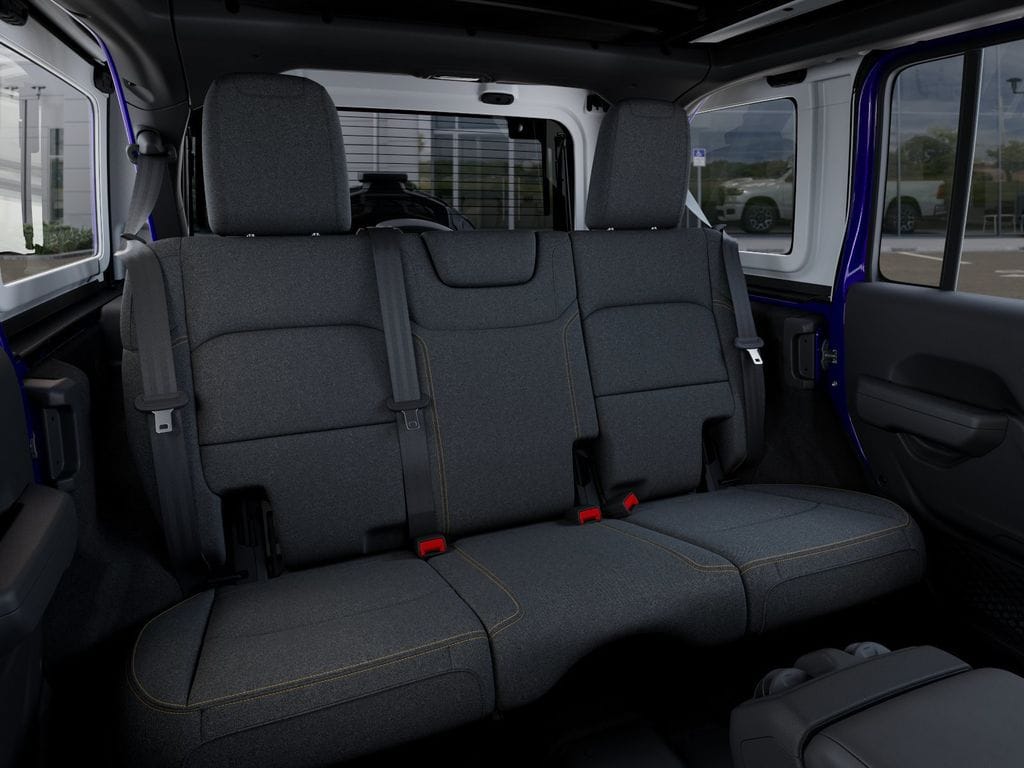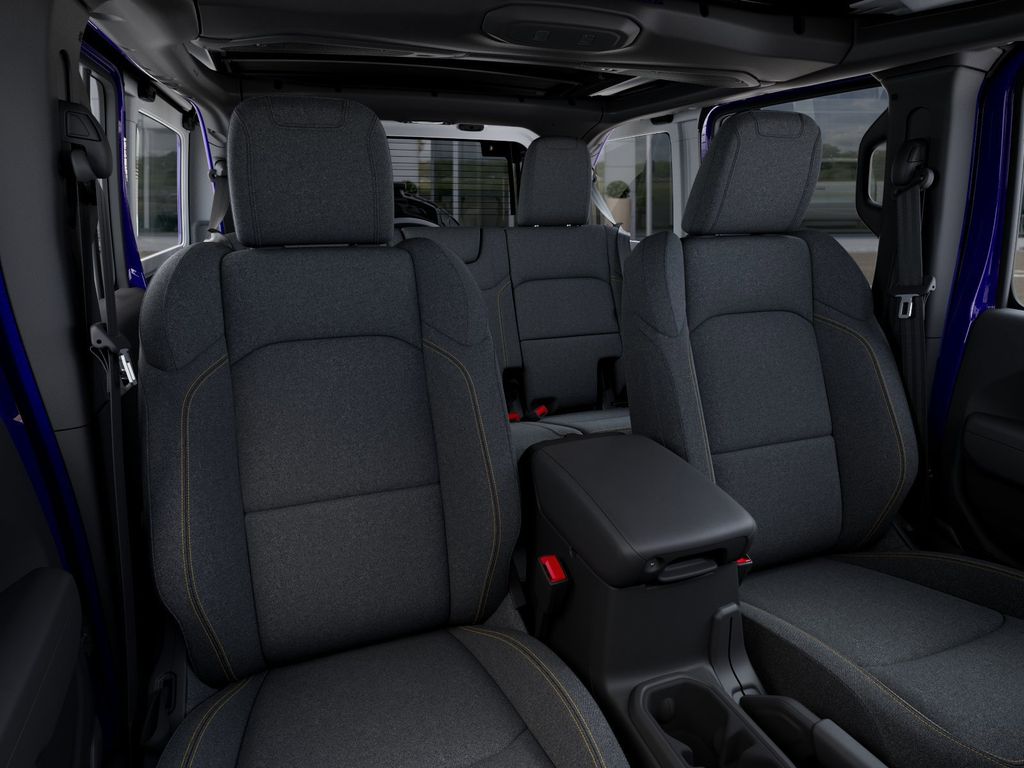 The Willys cabin is built for practical comfort with the Convenience Pack's heated cloth seats, a heated leather-wrapped steering wheel, remote start, air conditioning, power accessories, pushbutton ignition, auxiliary switches, and 12V power outlets. Uconnect technology leads the way with a 12.3-inch touchscreen, Apple CarPlay, Android Auto, Bluetooth, an eight-speaker audio system, and an available WiFi hotspot to keep you connected on every drive.