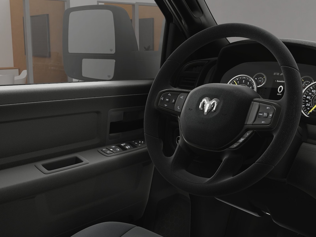 Our Tradesman cabin combines rewarding comfort and satisfying features like supportive work-ready seats, a tilt-adjustable steering wheel, air conditioning, power accessories, cruise control, pushbutton ignition, a 12V power outlet, door-sill scuff pads, and a 3.5-inch driver display. You can also enjoy easy connections with a 5-inch touchscreen, Bluetooth®, voice recognition, and a six-speaker sound system. It's a comfortable setting for drivers who keep busy!