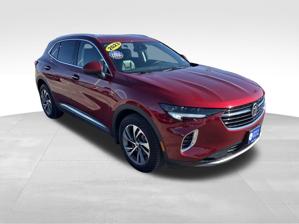 You are going to love our Accident Free, One Owner 2023 Buick Envision Essence AWD which has a sophisticated presence that turns heads in Cinnabar Metallic! Powered by a TurboCharged 2.0 Liter EcoTec 4 Cylinder generating 228hp matched with a 9 Speed Automatic transmission for staying comfortably ahead of the pack. This All Wheel Drive SUV also sees nearly 29mpg on the highway with impressive curb appeal. Check out our Envision's LED lighting, 18-inch alloy wheels, bright bodyside moldings, roof rails, and heated power mirrors with memory.
