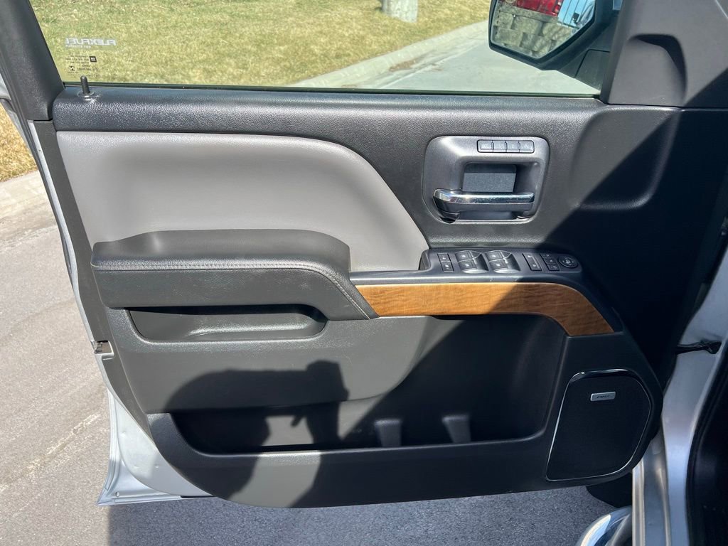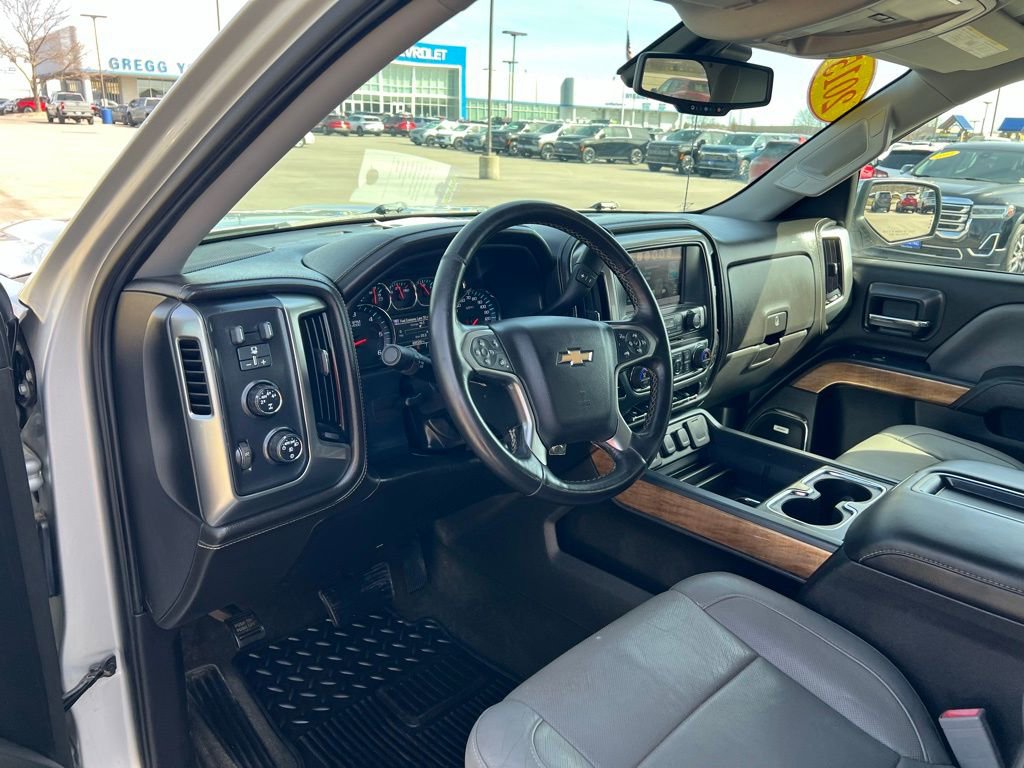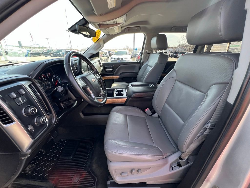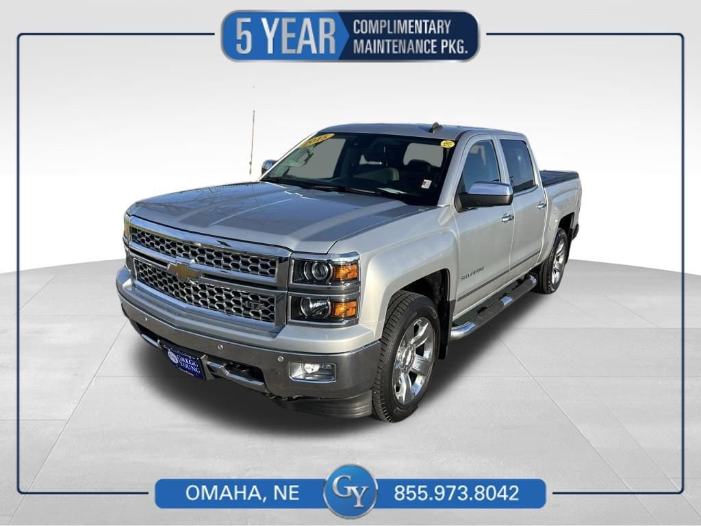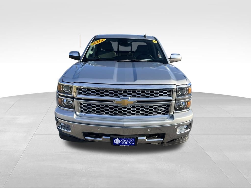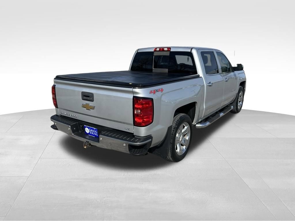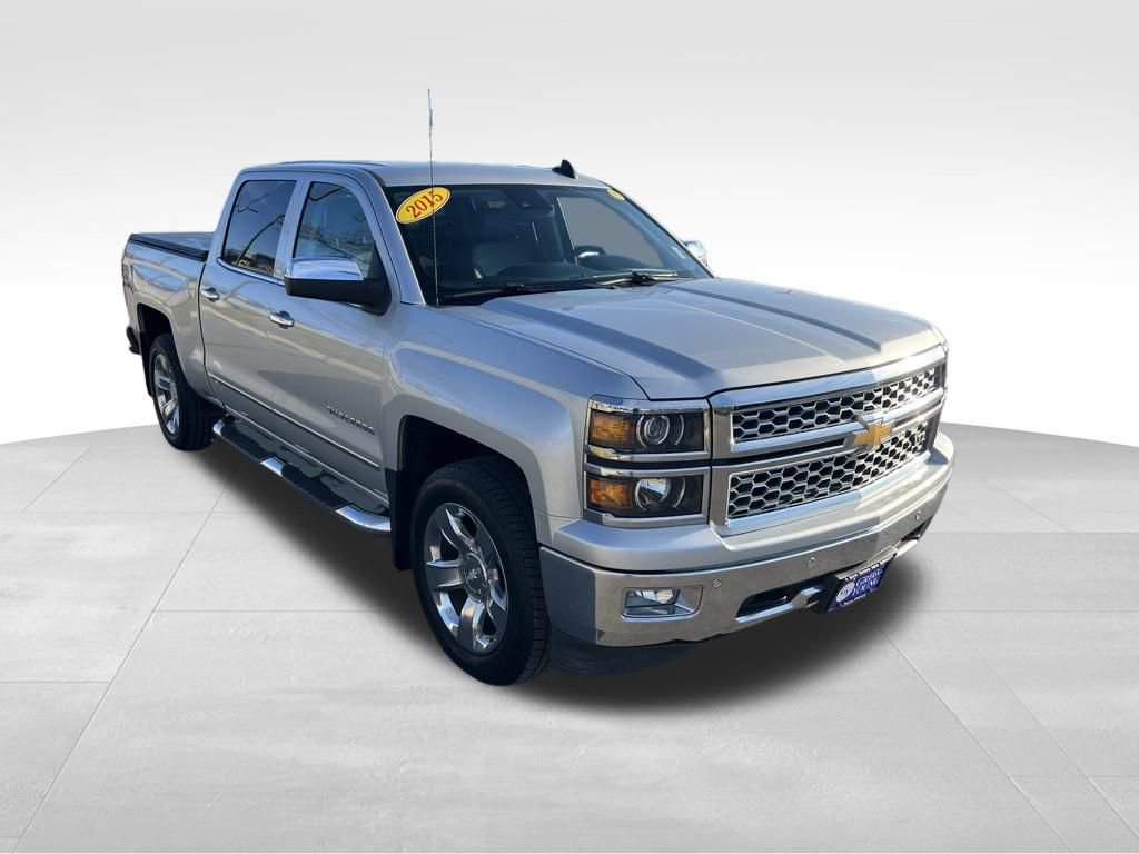 Our Accident Free 2015 Chevrolet Silverado 1500 LTZ Crew Cab 4X4 with the Plus Pack is shown in Silver Ice Metallic. Fueled by a 5.3 Liter V8 delivering 355hp connected to a tough 6 Speed Automatic transmission. Muddy rural roads, mountain terrain, towing your boat, or hauling lumber are no challenge for our Four Wheel Drive Silverado, and it rewards you with nearly 23mpg on the highway. The front suspension eases you down the road in comfort, while the rear setup is tough enough to keep up with your demanding life. The commanding appearance of this Silverado with 20-inch alloy wheels, running boards, a bedliner, and tonneau cover improves any landscape.