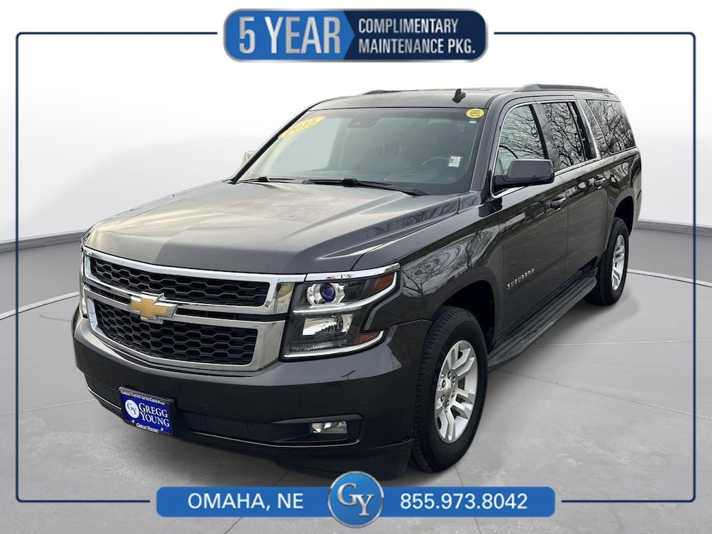 Why BUY from Gregg Young Chevy Omaha? When you choose this Tungsten Metallic 2015 Chevrolet Suburban LT with 127,342 miles, you are not just buying a used vehicle - you are investing in quality, reliability and peace of mind. Our clientele depend on us for Transparent Pricing, Convenience and, most importantly, Customer FIRST Service! All purchases include 5 year Complimentary Maintenance Package, valued at over $1,000! What this vehicle includes: Sun, Entertainment and Destinations Package ($2,855 value)Power Tilt-Sliding Sunroof with Express-Open/closeChevrolet MyLink Radio with Navigation/AM/FM StereoRear Seat Entertainment SystemLuxury Package ($2,940 value)Memory Settings3rd Row 60/40 Power Fold Split-BenchPassive Entry System2nd Row Power Release 60/40 Split Folding Bench SeatKeyless Start SwitchPower Folding and Adjustable Heated Outside MirrorsWireless ChargingHeated 2nd Row SeatsPower Tilt and Telescoping Steering ColumnFog LampsHands Free Power LiftgateFront and Rear Parking AssistRear Cross-Traffic Alert Sensor IndicatorSide Blind Zone Alert with Lane Change AlertColor-Keyed Heated Leather-Wrapped Steering WheelPreferred Equipment Group 1LTMemory SettingsHeated Front Reclining Bucket SeatsExtended-Range Remote Keyless Entry3rd Row Manual 60/40 Split-Folding Fold Flat Bench2nd Row 60/40 Split-Folding Manual BenchDriver and Front Passenger AirbagsFloor Console with Storage AreaAuto-Dimming Inside Rearview MirrorHeavy-Duty Locking Rear DifferentialPower-Adjustable Accelerator and Brake PedalsSingle-Speed Active Autotrac Transfer Case18" X 8.5" Aluminum WheelsLeather-Appointed Seat TrimPower LiftgateRear Park AssistForward Collision Alert Sensor IndicatorLane Departure Warning and Safety Alert SeatUniversal Home RemotePremium Smooth Ride Suspension Package Convenience Cruise control with steering wheel mounted controls. Set it and forget it. Road trips used to be stressful, until cruise control set the pace. Simply set the desired speed using the steering wheel mounted controls and it will maintain that speed without driver intervention. This can help minimize driver fatigue and improve overall fuel economy. Resting your right foot is right at your fingertips thanks to cruise control with steering wheel mounted controls. Power open and close liftgate - On-demand access. When your arms are full of cargo, the last thing you want to do is set it all down just to open the liftgate, then pick it all back up to load it in. By remotely opening and closing, power liftgate lets you skip straight to the loading. It also eliminates the awkward stretch to reach up for the liftgate to close it. Load and go with power open and close liftgate.Safety and Security Rear camera - Watching your back! The rear camera helps you see obstacles and hazards you otherwise couldn't by showing enhanced images of what is behind you. The rear camera is an extra set of eyes that's both convenient and safe. Brake assist - Stop right there. Something jumps out into the middle of the road and you need to stop now! With brake assist, you will. It uses the speed of the brake pedals travel to sense panic braking, then applies all available power to boost your stopping power. Brake assist can stop the accident before it is one.Technology and Telematics Mobile hotspot - WiFi on the fly. Connect your devices to the Internet through your vehicles private mobile hotspot and take the internet wherever your journey takes you, without eating up your data allowance. Find the hotspot with mobile hotspot. SUSPENSION PACKAGE, PREMIUM SMOOTH RIDE, EMISSIONS, FEDERAL REQUIREMENTS, ENGINE, 5.3L V8 ECOTEC3 WITH ACTIVE FUEL MANAGEMENT, DIRECT INJECTION AND VARIABLE VALVE TIMING, TRANSMISSION, 6-SPEED AUTOMATIC, ELECTRONICALLY CONTROLLED, REAR AXLE, 3.08 RATIO, WHEELS, 18" X 8.5" (45.7 CM X 21.6 CM) ALUMINUM WITH HIGH-POLISHED FINISH, TIRES, P265/65R18 ALL-SEASON, BLACKWALL, PAINT SCHEME, SOLID APPLICATION, TUNGSTEN METALLIC, SEATING, FRONT BUCKET WITH LEATHER-APPOINTED SEAT