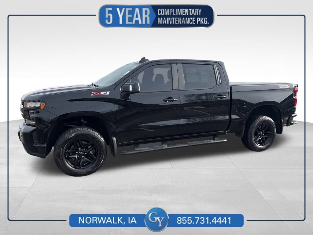 You'll be leading the way in our rugged **Accident Free**2019**Chevrolet**Silverado 1500**LT Trail Boss**Crew Cab**4X4**Heated Steering Wheel**Sunroof** that looks outstanding in Black! Powered by a 5.3 Liter EcoTec3 V8 that offers 355hp paired to an 8 Speed Automatic transmission with tow/haul mode for easy capability. Designed to dominate off-road, this Four Wheel Drive truck boasts a lifted suspension, automatic locking rear differential, two-speed transfer case, and monotube Rancho shocks, and it can reach nearly 20mpg on the highway. Our Silverado also grabs your attention with its LED lighting, fog lamps, dual exhaust outlets, and black alloy wheels.