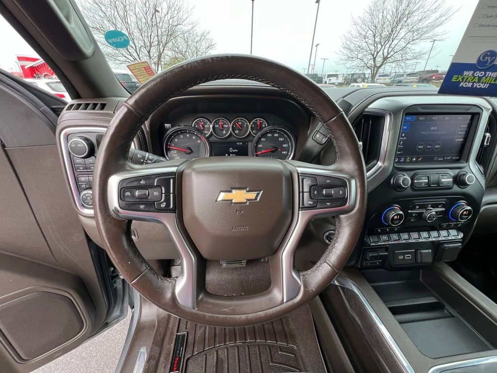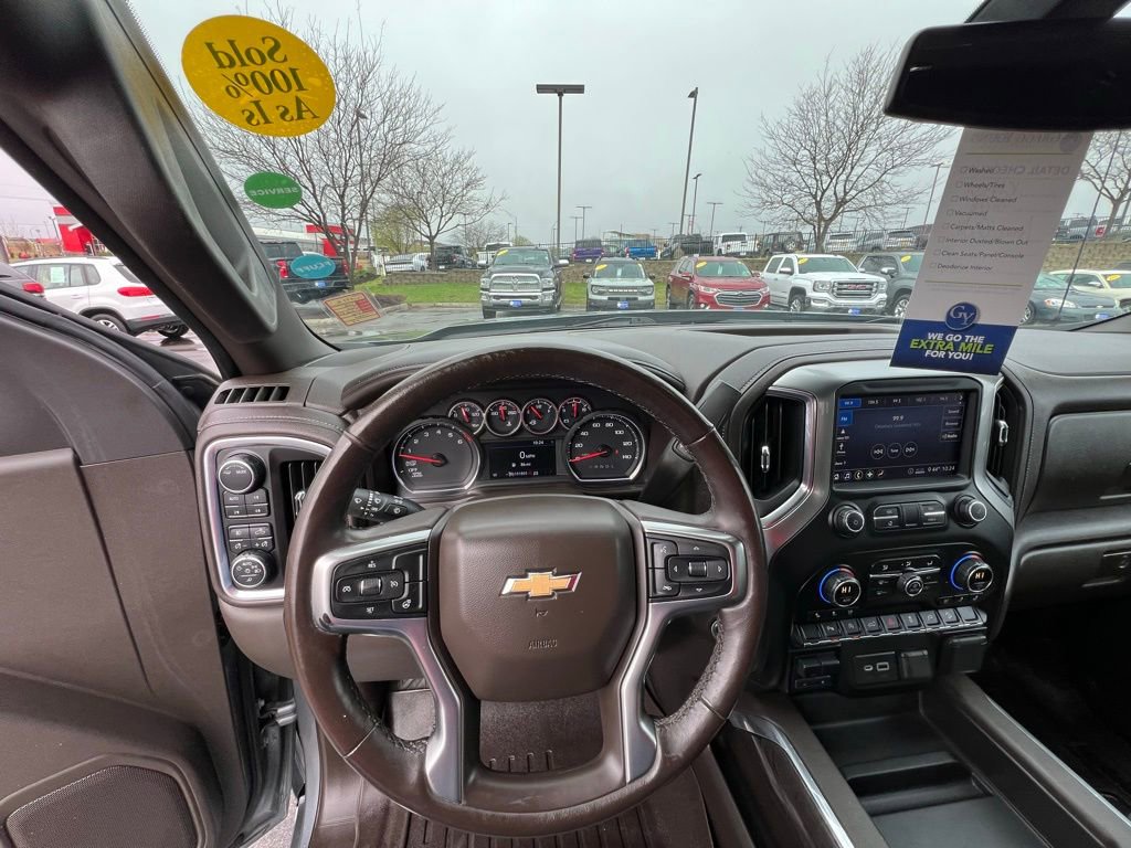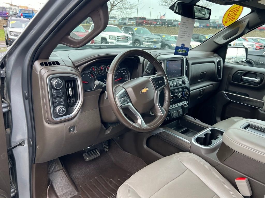 Our One Owner, Accident Free 2020 Chevrolet Silverado 1500 LTZ Crew Cab 4X4 with the Plus Pack is engineered for your life in Satin Steel Metallic! Motivated by a 5.3 Liter EcoTec V8 that offers 355hp paired with an 8 Speed Automatic transmission with tow/haul mode. This Four Wheel Drive truck also has an HD auto-locking rear differential and standard trailering package to manage big jobs successfully, and it returns nearly 22mpg on the highway. Our Silverado shines with a bold grille, LED lighting, chrome bumpers, alloy wheels, a bed-mounted 120V outlet, and our Plus Pack for a power up/down tailgate and perimeter lighting.