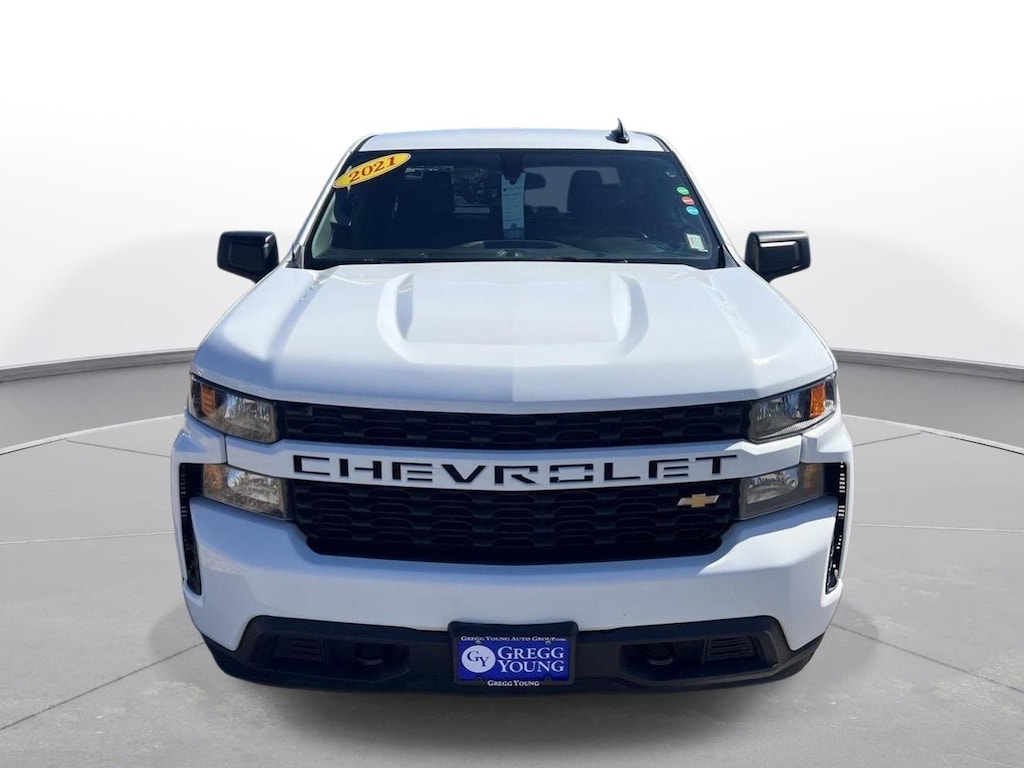 Why BUY from Gregg Young Chevy Omaha? When you choose this Summit White 2021 Chevrolet Silverado 1500 Custom with 45,857 miles, you are not just buying a used vehicle - you are investing in quality, reliability and peace of mind. Our clientele depend on us for Transparent Pricing, Convenience and, most importantly, Customer FIRST Service! All purchases include 5 year Complimentary Maintenance Package, valued at over $1,000! CARFAX No Accidents! CARFAX One Owner! What this vehicle includes: Custom Convenience PackageRemote Vehicle Starter SystemElectric Rear-Window DefoggerEZ Lift Power Lock and Release TailgateLED Cargo Area LightingPreferred Equipment Group 1CXRear 60/40 Folding Bench Seat (folds Up)40/20/40 Front Split Bench SeatPower Front Windows with Passenger Express DownPower Rear Windows with Express DownDeep-Tinted GlassRemote Keyless EntryPower Door LocksPower Front Windows with Driver Express Up/downColor-Keyed Carpeting Floor CoveringFront Rubberized Vinyl Floor MatsRear Rubberized-Vinyl Floor MatsBluetooth For PhoneCompassBody Color GrilleElectronic Cruise Control170 Amp AlternatorManual Tilt Wheel Steering ColumnSingle-Speed Transfer CaseCustom Value PackageStandard TailgateCloth Seat Trim3.5" Diagonal Monochromatic DisplayFront Frame-Mounted Black Recovery HooksInfotainment PackageSiriusXM RadioOnStar and Chevrolet Connected Services Capable Convenience Cruise control with steering wheel mounted controls. Set it and forget it. Road trips used to be stressful, until cruise control set the pace. Simply set the desired speed using the steering wheel mounted controls and it will maintain that speed without driver intervention. This can help minimize driver fatigue and improve overall fuel economy. Resting your right foot is right at your fingertips thanks to cruise control with steering wheel mounted controls.Safety and Security Rear camera - Watching your back! The rear camera helps you see obstacles and hazards you otherwise couldn't by showing enhanced images of what is behind you. The rear camera is an extra set of eyes that's both convenient and safe. Brake assist - Stop right there. Something jumps out into the middle of the road and you need to stop now! With brake assist, you will. It uses the speed of the brake pedals travel to sense panic braking, then applies all available power to boost your stopping power. Brake assist can stop the accident before it is one.Technology and Telematics Smart device mirroring - Smartphone, meet smart car. You can control your device through your vehicle's infotainment system. Smart device mirroring brings together safety and convenience by making it easier to find what you're looking for while keeping your eyes on the road. Mobile hotspot - WiFi on the fly. Connect your devices to the Internet through your vehicles private mobile hotspot and take the internet wherever your journey takes you, without eating up your data allowance. Find the hotspot with mobile hotspot. EMISSIONS, FEDERAL REQUIREMENTS, ENGINE, 2.7L TURBO, TRANSMISSION, 8-SPEED AUTOMATIC, ELECTRONICALLY CONTROLLED, GVWR, 7000 LBS. (3175 KG), REAR AXLE, 3.42 RATIO, WHEELS, 20" X 9" (50.8 CM X 22.9 CM) BRIGHT SILVER PAINTED ALUMINUM, TIRES, 275/60R20 ALL-SEASON, BLACKWALL, SUMMIT WHITE, SEATS, FRONT 40/20/40 SPLIT-BENCH, JET BLACK, CLOTH SEAT TRIM, AUDIO SYSTEM, CHEVROLET INFOTAINMENT 3 SYSTEM, AUTO-LOCKING REAR DIFFERENTIAL, CHEVYTEC SPRAY-ON BEDLINER, BLACK WITH CHEVROLET LOGO, LICENSE PLATE KIT, FRONT, POWER OUTLET, INSTRUMENT PANEL, 120-VOLT, POWER OUTLET, BED MOUNTED, 120-VOLT, AIR CONDITIONING, SINGLE-ZONE MANUAL, SEMI-AUTOMATIC When you choose a Certified Pre-Owned vehicle from Gregg Young, youre not just buying a used car youre getting extra protection, added peace of mind, and built-in value you wont find with an ordinary pre-owned vehicle. Every Certified Pre-Owned vehicle must pass an extensive 172-point inspection performed by trained technicians. From engine and transmission performance to interior q