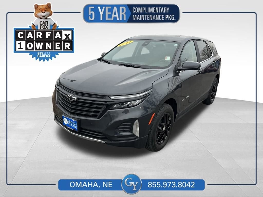 Our versatile **One Owner**Accident Free**2022**Chevrolet**Equinox**LT**AWD**Confidence & Convenience Package**Remote Starter** combines comfort and easy capability in Iron Gray Metallic! Motivated by a TurboCharged 1.5 Liter 4 Cylinder supplying 170hp matched to a 6 Speed Automatic transmission to explore your world confidently. This All Wheel Drive SUV also achieves nearly 31mpg on the highway with a distinctive appearance crafted to draw attention. Check out our package's fog lamps and a power liftgate that complements LED lighting, alloy wheels, and heated power mirrors.You'll feel right at home in our LT cabin that treats you to our package's supportive premium-cloth heated front seats, heated leather-wrapped steering wheel, and dual-zone automatic climate control, all enhanced by impressive infotainment technology. The 7-inch touchscreen with Bluetooth®, WiFi compatibility, wireless Android Auto®/Apple CarPlay®, voice recognition, and a six-speaker sound system are just what you need for digital convenience. For maximum practicality, our Equinox checks in with plenty of cargo space.Drive with added peace of mind knowing that advanced Chevrolet safety features, including a backup camera, automatic braking, lane-keeping assistance, forward collision alert, a following-distance indicator, pedestrian detection, and our package's blind-spot monitoring and rear cross-traffic alert are on board. Features like those create a competitive advantage for our Equinox LT! Save this Page and Call for Availability. We Know You Will Enjoy Your Gregg Young Chevrolet Omaha Test Drive Towards Ownership! We offer PRE-APPROVAL programs so call (402) 572-8080 to get started today! At Gregg Young Chevrolet... We'll Go The Extra Mile For You. We have an app for that! Download the Gregg Young Chevrolet application directly to your iPhone or Android.