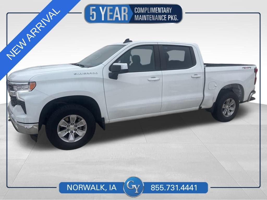 Our **2023**Chevrolet**Silverado 1500**LT**Crew Cab**4X4**Heated Seats**Heated Steering Wheel** is a wise choice for working smarter in Summit White! Powered by a 5.3 Liter V8 delivering 355hp to a 10 Speed Automatic transmission for top-notch towing and hauling. This Four Wheel Drive truck also has an Eaton automatic locking rear differential for better traction, and it scores nearly 20mpg on the highway. The upscale exterior features high-intensity LED headlamps, chrome bumpers, matching mirror caps, a rear CornerStep, cargo-bed lighting, black recovery hooks, an EZ-Lift power lock/release tailgate, heated power mirrors, and a trailer hitch with Hitch Guidance. This is a Silverado of style and substance!