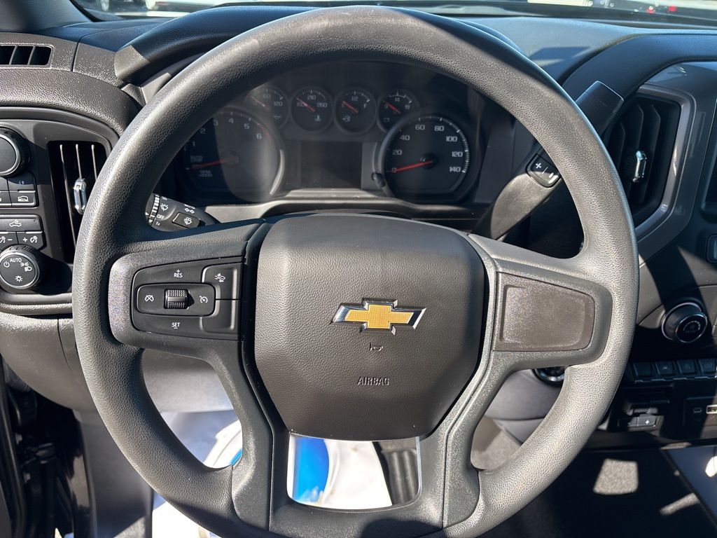 Our Custom cabin is well-equipped for busy days with supportive cloth seats, 10-way power for the driver, a tilt-adjustable steering wheel, single-zone climate control, cruise control, 12V/120V power outlets, keyless access/ignition, and remote start. A 7-inch touchscreen, WiFi compatibility, Android Auto®, Apple CarPlay®, Bluetooth®, and a six-speaker sound system are onboard for quick connections and your favorite soundtrack. Added convenience comes with our Silverado's smart storage solutions.