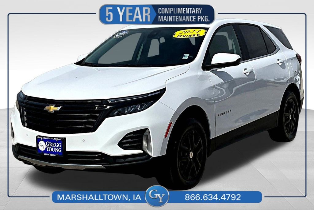 **One Owner**Accident Free**2024**Chevrolet**Equinox**LT**AWD*Driver Convenience Pack**Remote Start**Power Liftgate**Heated Seats**Allow us to introduce our One Owner, Accident Free 2024 Chevrolet Equinox LT AWD with the Convenience Pack which is crafted for comfortable journeys with a stylish Summit White design! Motivated by a TurboCharged 1.5 Liter 4 Cylinder generating 175hp matched to a 6 Speed Automatic transmission for adventure-friendly performance. This All Wheel Drive SUV also scores nearly 30mpg on the highway with agile handling. Have a close look at our Equinox to appreciate its appealing exterior with LED headlamps/daytime running lights, a power liftgate, bold alloy wheels, bright beltline moldings, and heated power mirrors.Once inside, our LT cabin encourages you to enjoy your time on the road with heated premium-cloth front seats, eight-way power for the driver, a wrapped steering wheel, dual-zone automatic climate control, remote start, cruise control, 12V power outlets, and keyless access/ignition. Keeping your family connected is a breeze with a 7-inch touchscreen, WiFi compatibility, wireless Android Auto/Apple CarPlay, voice recognition, Bluetooth, and a six-speaker audio system.Chevrolet raises the bar for intelligent safety with a rearview camera, automatic braking, forward collision alert, a following-distance indicator, lane-keeping assistance, pedestrian detection, blind-spot monitoring, parking sensors, and more. Confident journeys can get off to a great start in our Equinox LT! Save this Page and Call for Availability. We Know You Will Enjoy Your Test Drive Towards Ownership!