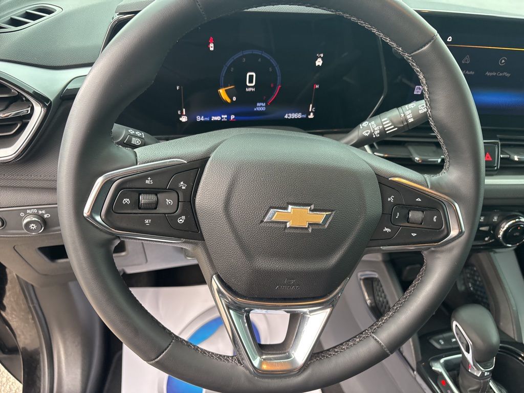 A bold adventure machine, our Accident Free, One Owner 2024 Chevrolet Trailblazer LT AWD with the Cold Weather Pack is made to move out in Mosaic Black Metallic! Powered by a TurboCharged 1.3 Liter 3 Cylinder generating 155hp matched to a CVT for everyday capability and then some. You can also take advantage of agile handling for hugging the curves, and this All Wheel Drive SUV sees nearly 30mpg on the highway. Eye-catching details help define our top-notch Trailblazer design with signature LED lighting, high-gloss black wheels, silver-painted bumper accents, roof rails, and heated power mirrors.