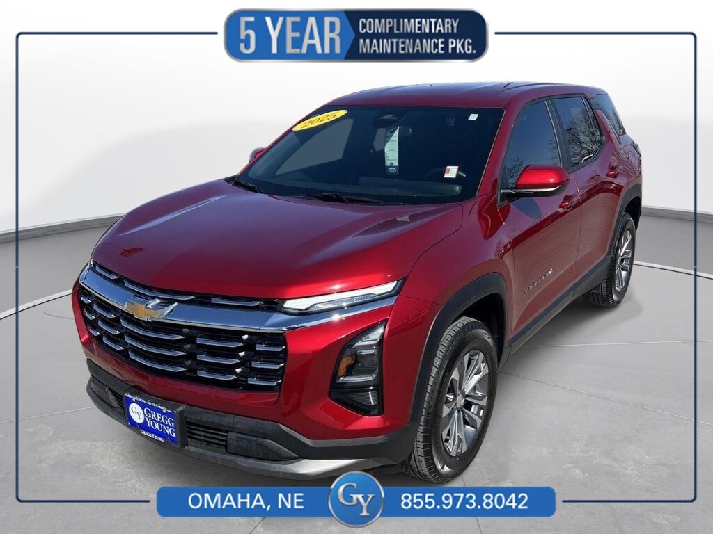 Why BUY from Gregg Young Chevy Omaha? When you choose this Radiant Red Tintcoat 2025 Chevrolet Equinox AWD LT with 8,926 miles, you are not just buying a used vehicle - you are investing in quality, reliability and peace of mind. Our clientele depend on us for Transparent Pricing, Convenience and, most importantly, Customer FIRST Service! All purchases include 5 year Complimentary Maintenance Package, valued at over $1,000! No Accidents! What this vehicle includes: Preferred Equipment Group 2LT235/65R17 All-Season Blackwall Tires Safety and Security Pedestrian impact prevention - An extra step toward safety. Pedestrians don't always stop, look, and listen, but with Pedestrian Impact Prevention, your vehicle is equipped to better see them and avoid them. This system constantly monitors the road ahead to identify and track pedestrians. It projects that image to an interior display screen, AND should an impact become likely, Pedestrian impact prevention takes steps to avoid a collision. Forward collision mitigation - Forward thinking. You look away for just a second and suddenly the vehicle in front of you has stopped. That's when the forward collision mitigation system comes to life. When it senses an impending impact, it will activate a combination of features to help prevent or reduce the severity of an accident. Forward collision mitigation is always looking ahead. Rear camera - Watching your back! The rear camera helps you see obstacles and hazards you otherwise couldn't by showing enhanced images of what is behind you. The rear camera is an extra set of eyes that's both convenient and safe. Rear collision mitigation - It has your back. Rear collision mitigation uses sensors to monitor the area behind you. If it senses an impending crash, it activates certain features to help prevent a collision or reduce the severity of it. Put your worries behind you with rear collision mitigation.Technology and Telematics Mobile hotspot - WiFi on the fly. Connect your devices to the Internet through your vehicles private mobile hotspot and take the internet wherever your journey takes you, without eating up your data allowance. Find the hotspot with mobile hotspot. EMISSIONS, FEDERAL REQUIREMENTS, EMISSIONS, FEDERAL, ENGINE, 1.5L TURBO DOHC 4-CYLINDER, SIDI, VVT, TRANSMISSION, 8-SPEED AUTOMATIC, AXLE, 3.47 FINAL DRIVE RATIO, WHEELS, 17" (43.2 CM) GRAZEN METALLIC MACHINED-FACE ALUMINUM, TIRES, 235/65R17, ALL-SEASON BLACKWALL, RADIANT RED TINTCOAT, SEATS, FRONT BUCKET, BLACK, CLOTH SEAT TRIM, LICENSE PLATE FRONT MOUNTING PACKAGE When you choose a Certified Pre-Owned vehicle from Gregg Young, youre not just buying a used car youre getting extra protection, added peace of mind, and built-in value you wont find with an ordinary pre-owned vehicle. Every Certified Pre-Owned vehicle must pass an extensive 172-point inspection performed by trained technicians. From engine and transmission performance to interior quality, safety features, and road-test standards, we verify the vehicle meets strict certification requirements before it ever reaches our lot. Ask if this vehicle qualifies for our Certified Pre-Owned Program 12-Month / 12,000-Mile Premier Coverage Drive confidently from day one. Our Premier Warranty* protects you against unexpected repairs for your first 12 months or 12,000 miles. Whats covered? Practically all major vehicle components (excluding maintenance items and wear-and-tear parts) Electrical, mechanical, interior, exterior, and more giving you true peace of mind with your purchase. 36-Month / 100,000-Mile Powertrain Protection Our Certified Powertrain Warranty** keeps you covered long after you leave the dealership, protecting many of your vehicles most important and expensive components for up to 36 months or 100,000 miles. What's covered? Engine Parts Transmission/Transaxle Parts Drive Axle Parts Hybrid Components Transfer Case Components Come on in to Gregg Young Chevy Omaha today at 17750 Burt St Omaha NE 68118 or call (888)