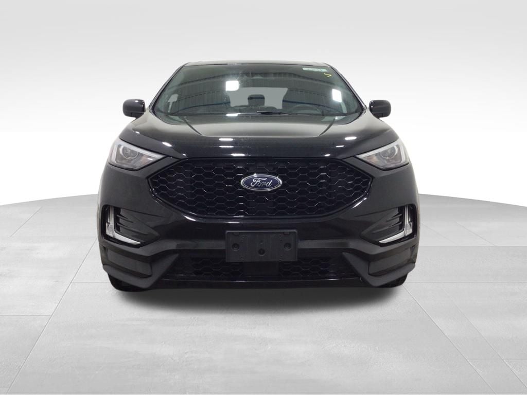 A sharp choice, our One Owner, Accident Free 2024 Ford Edge ST-Line AWD with the Co-Pilot360 Assist+ Pack blends a refined design and remarkable capabilities in Agate Black Metallic! Powered by a TurboCharged 2.0 Liter EcoBoost 4 Cylinder supplying 250hp tethered to an 8 Speed Automatic transmission for confidence from road to trail. Also known for its responsive handling, this All Wheel Drive SUV sees nearly 28mpg on the highway with distinctive good looks. Our Edge's exterior equipment highlights include LED signature lighting, fog lamps, a black mesh grille, body-color cladding, 20-inch gloss-black wheels, a power liftgate, and dual integrated exhaust outlets.