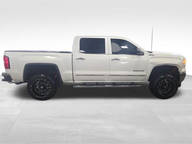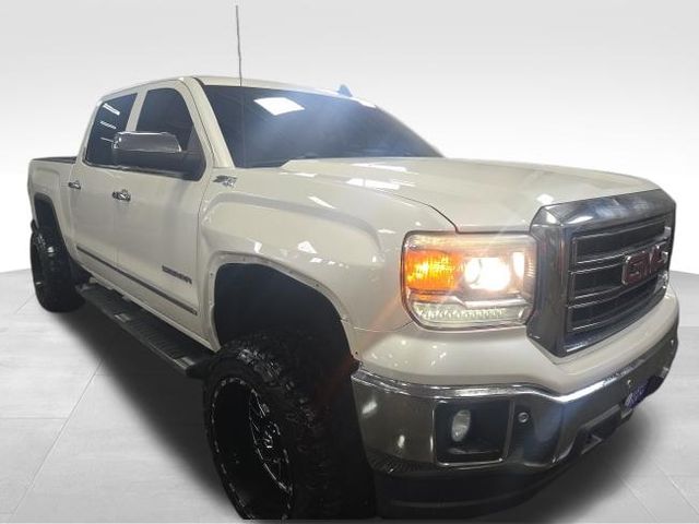 Style meets substance in our 2015 GMC Sierra 1500 SLT Crew Cab 4X4 presented in beautiful White Diamond Tricoat. Powered by a 5.3 Liter V8 that offers 355hp paired with a 6 Speed Automatic transmission with Tow/Haul mode to provide great hauling and towing capability. Paired with coil-over-shock front suspension, this Four Wheel Drive offers a controlled ride that is comfortable, plus scores nearly 22mpg on the highway. Our handsome truck has attractive chrome accents, deep tinted glass, custom wheels, running boards, fog lamps, and an EZ Lift and Lower locking tailgate.