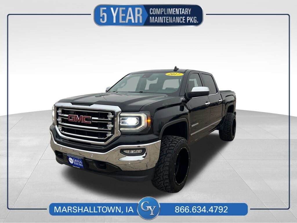 Style meets substance in our **2017**GMC**Sierra 1500**SLT**Crew Cab**4X4**Premium Plus Package**Heated and Cooled Leather Seats** presented in Onyx Black. Powered by a 5.3 Liter V8 EcoTec3 producing 355hp paired with an 8 Speed Automatic transmission to provide great hauling and towing capability. This Four Wheel Drive truck is also equipped with solid suspension to take you off the beaten path and score nearly 22mpg on the road! Our Sierra features 20-inch wheels, halogen front fog lamps, and projector-beam headlamps with LED signature lighting.Open the door to this SLT, and you will find a solid machine that embodies attention to detail and craftsmanship. Heated cloth bucket seats, a power outlet, a leather-wrapped steering wheel with audio/cruise controls, a rear vision camera, a Color-Touch Radio with IntelliLink, and a color Driver Information Center display are just a few amenities.The well-known GMC safety features include StabiliTrak with Traction Control, Hill Descent Control, and numerous airbags. Get the job done right with the security, performance, and comfort that only come from the Sierra 1500 SLT. Save this Page and Call for Availability. We Know You Will Enjoy Your Test Drive Toward Ownership!
