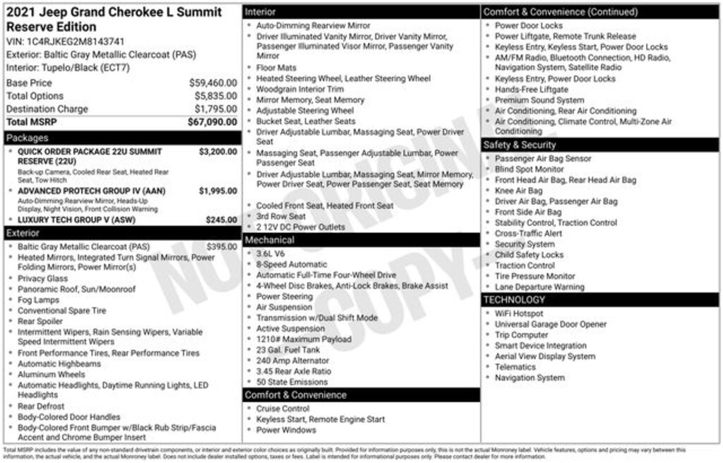 Maximum utility meets passenger comfort in the fullsize segment! Jeep prioritized practicality, efficiency, and style by including: an automatic dimming rear-view mirror, automatic dimming door mirrors, and power seats. It features an automatic transmission, 4-wheel drive, and a refined 6 cylinder engine.