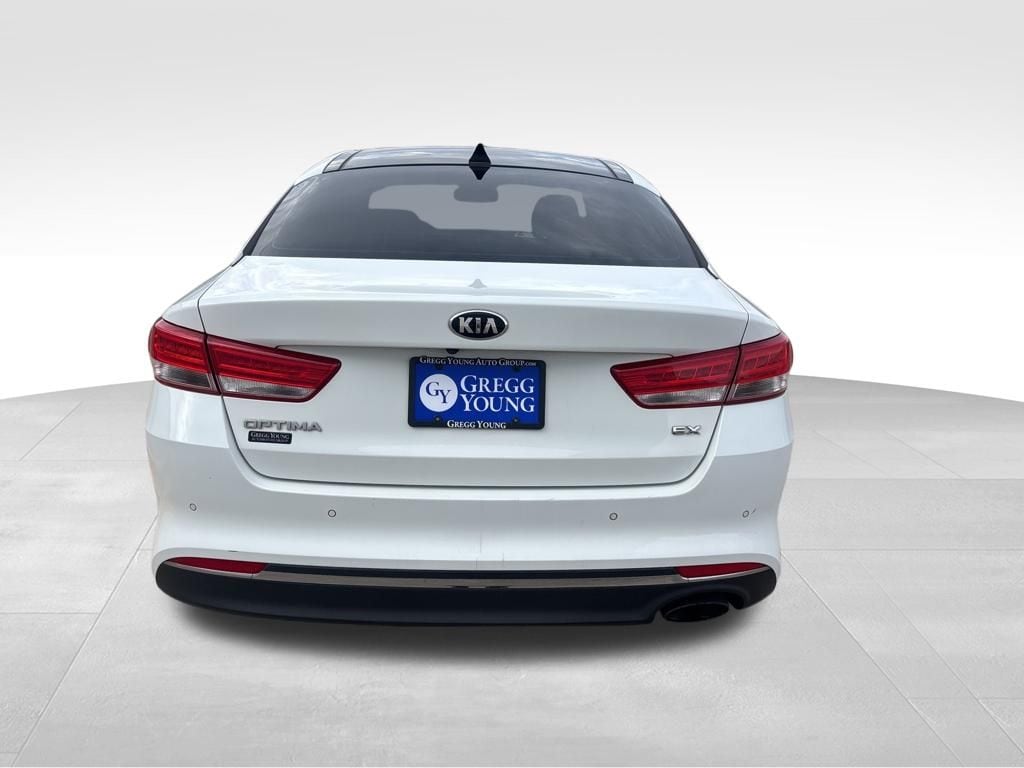 Admire the trendsetting sleek design and wealth of amenities included in our 2017 Kia Optima EX Sedan that's a knockout in Snow White Pearl! Motivated by a 2.4 Liter 4 Cylinder that offers 185hp with a 6 Speed Automatic transmission. This Front Wheel Drive sedan delivers on its promises - scoring nearly 34mpg on the highway and delighting drivers with incredible handling and comfort. Designed to inspire, our Optima EX turns heads with its unique grille, dual projector beam headlights, a sunroof, alloy wheels, and chrome exhaust tip.
