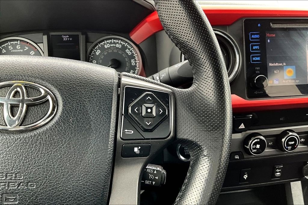Climb inside the comfortable TRD Sport cabin that's ready for action and boasts cloth seats. It helps you stay warm and relaxed with a push-button start, a multi-information display, power windows and locks, and an integrated backup camera. You'll have no problem taking on your day in this great truck with Entune premium audio, a prominent display, available navigation, wireless smartphone charging, Bluetooth, and available satellite radio.