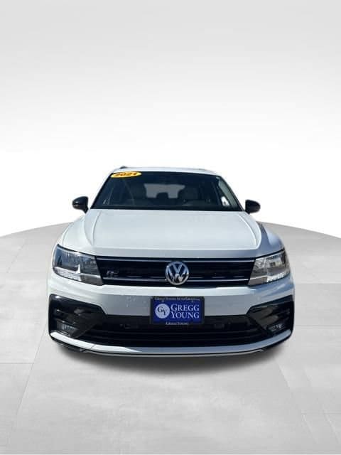 Sporty and spirited, our One Owner 2021 Volkswagen Tiguan SE R-Line Black 4MOTION is here to help you find the fun in life with a stylish Platinum Gray Metallic design! Motivated by a TurboCharged 2.0 Liter 4 Cylinder generating 184hp paired to an 8 Speed Tiptronic Automatic transmission. This All Wheel Drive SUV features sharp handling, so it's nimble enough for almost any adventure, and it achieves nearly 27mpg on the highway. Our Tiguan also takes an aggressive stance that's detailed by exclusive R-Line upgrades, including side sills, intakes, and bumpers, all set off by LED lighting, fog lamps, a panoramic sunroof, and 20-inch black alloy wheels.